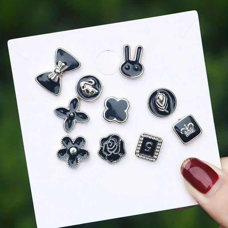 Elevate your fashion statement with the 10pcs/Set Beautiful Different Design Button Brooch, a versatile collection that combines the charm of unique designs with a touch of elegance for your wardrobe. These button brooches feature meticulously crafted and diverse designs, exuding sophistication and style. Whether you're accentuating your attire for a special occasion, adding flair to your everyday look, or simply expressing your love for versatile and fashionable accessories, this button brooch set is the perfect choice for a stylish and adaptable addition to your fashion repertoire.