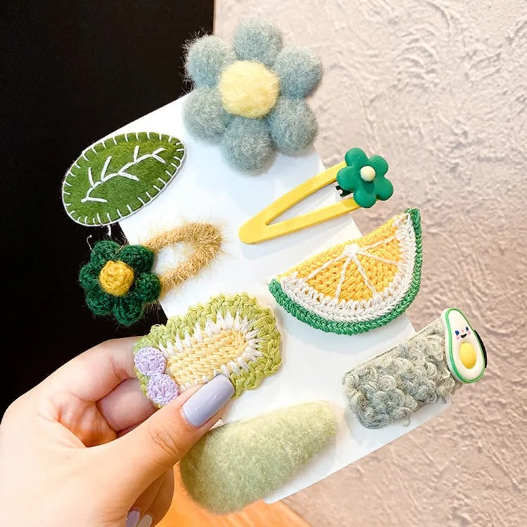 "Handmade Elegance: 8-Piece Beautiful Design Wool Knitted Hair Clips"