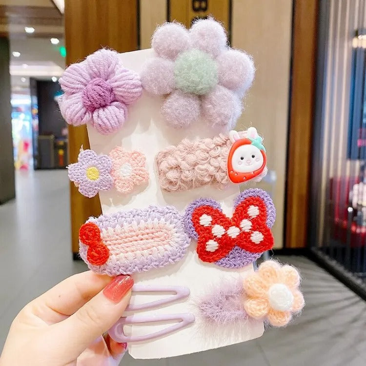 "Artisanal Chic: 9-Piece Handmade Wool Knitted Hair Clips Collection"