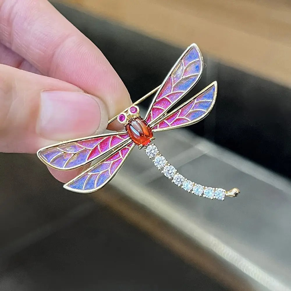 Embrace an air of enchantment with the Elegant Dragonfly Crystal Pin Brooch, a stunning accessory that captures the allure of nature's most graceful fliers. This exquisite brooch features a meticulously crafted dragonfly silhouette adorned with shimmering crystals that illuminate its delicate wings, exuding a sense of ethereal beauty and sophistication. The intricate details of the dragonfly's body and wings reflect fine craftsmanship, making this accessory a timeless statement piece. Whether pinned to scarves, jackets, or hats, this brooch adds a touch of elegance and whimsy to any attire, epitomizing the charm of the natural world in a mesmerizing fashion.