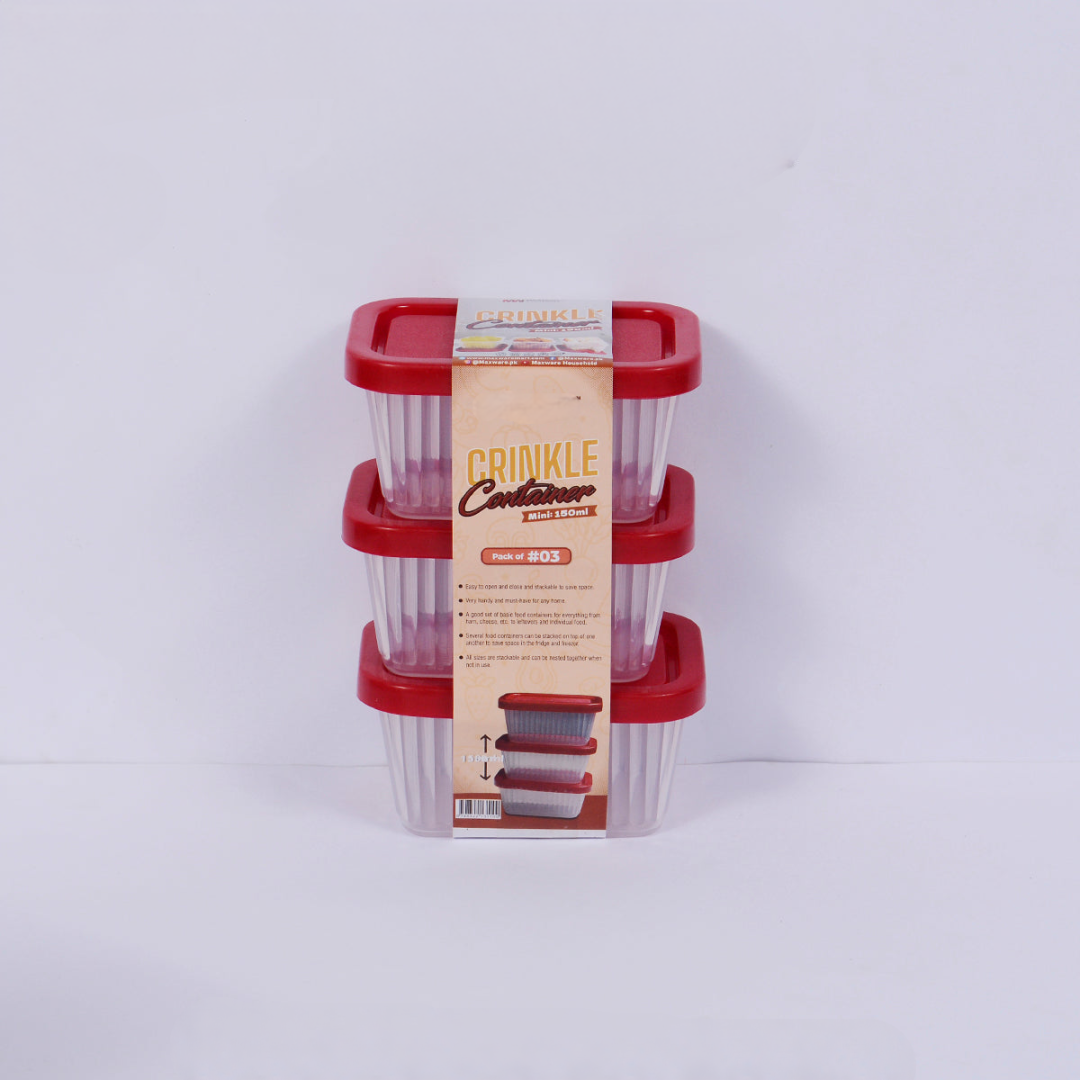 Store snacks and condiments with ease using the Pack of 3 Mini Crinkle Food Containers! Each container holds 150ml, perfect for small servings, sauces, or on-the-go snacks. Compact and stackable, they keep your food fresh and organized.