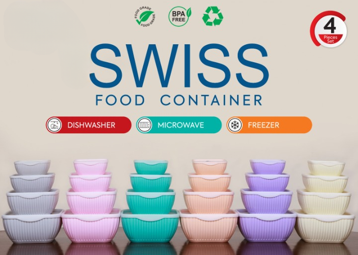 Organize your kitchen with the Pack of 4 Plastic Swiss Food Containers! These containers feature a secure lid to keep food fresh, perfect for storing leftovers, meal prep, or snacks. Durable and stackable, they help maximize space in your kitchen or pantry.