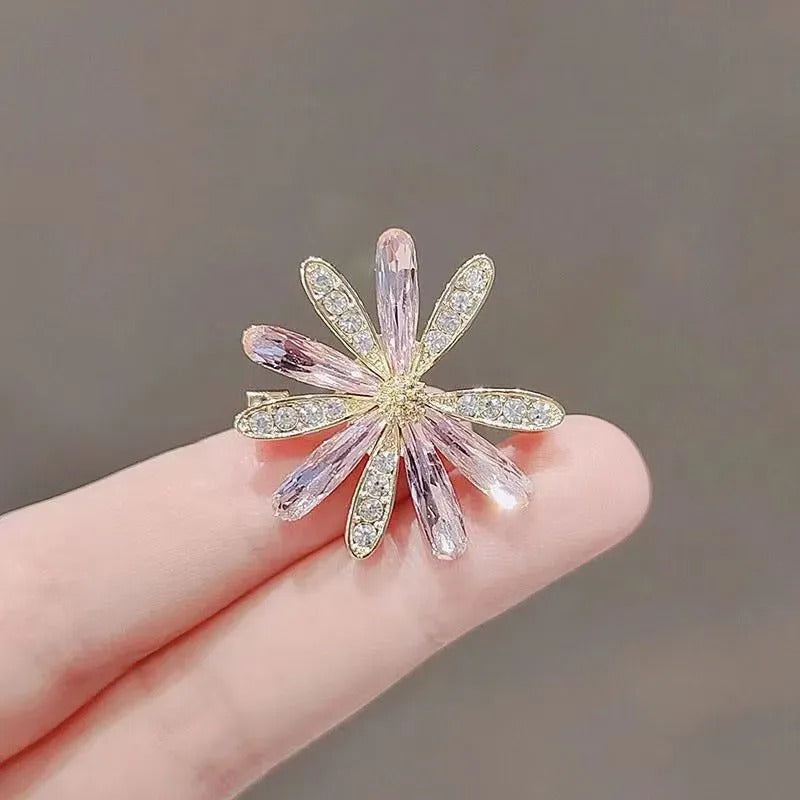 Sparkly Crystal Glass Daisy Flower Pin Brooch