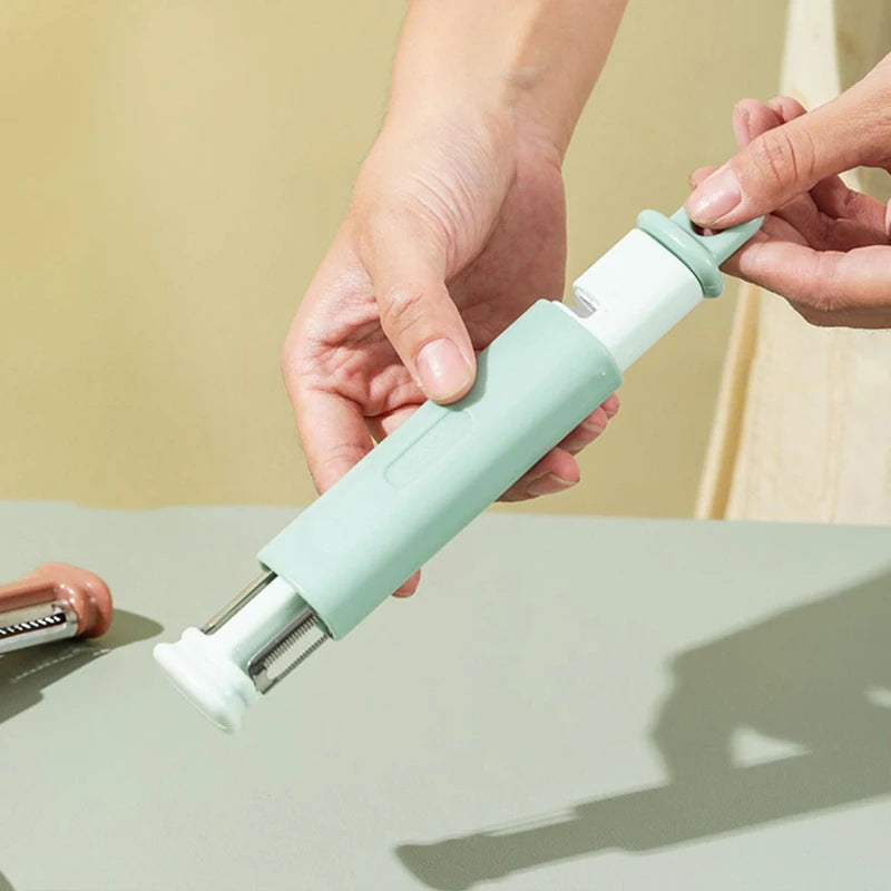 Streamline your kitchen prep with the Stainless Steel 2-in-1 Vegetable Peeler & Knife Sharpener! This handy tool combines a sharp, efficient vegetable peeler with a built-in knife sharpener, making it an essential for every kitchen.